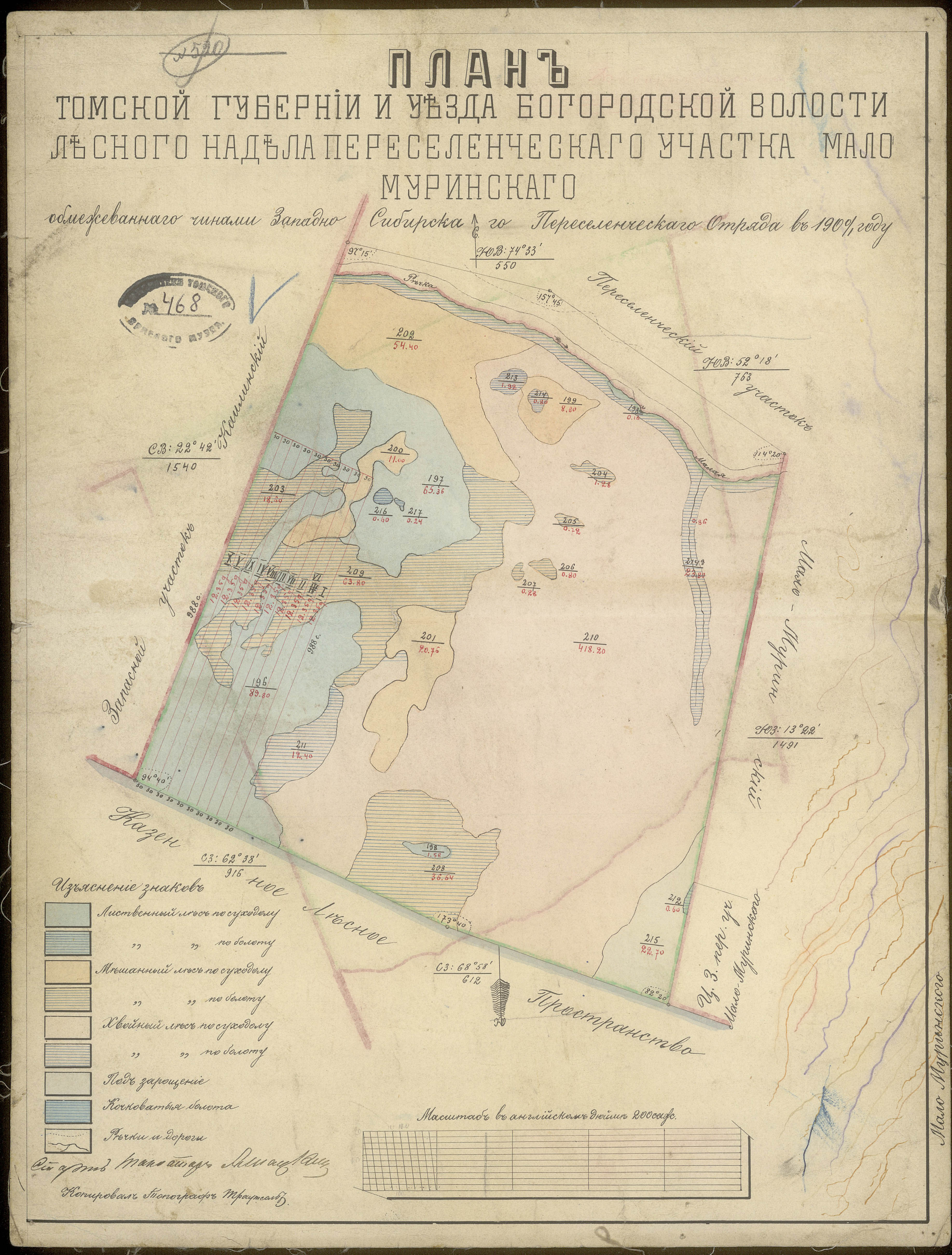| План Томской губернии и уезда Богородской волости лесного надела переселенческого участка Мало-Муринского, обмежеванного чинами Западно-Сибирского переселенческого отряда в 1900/1 году | 1 MB | JPEG Image | View Details | Download |