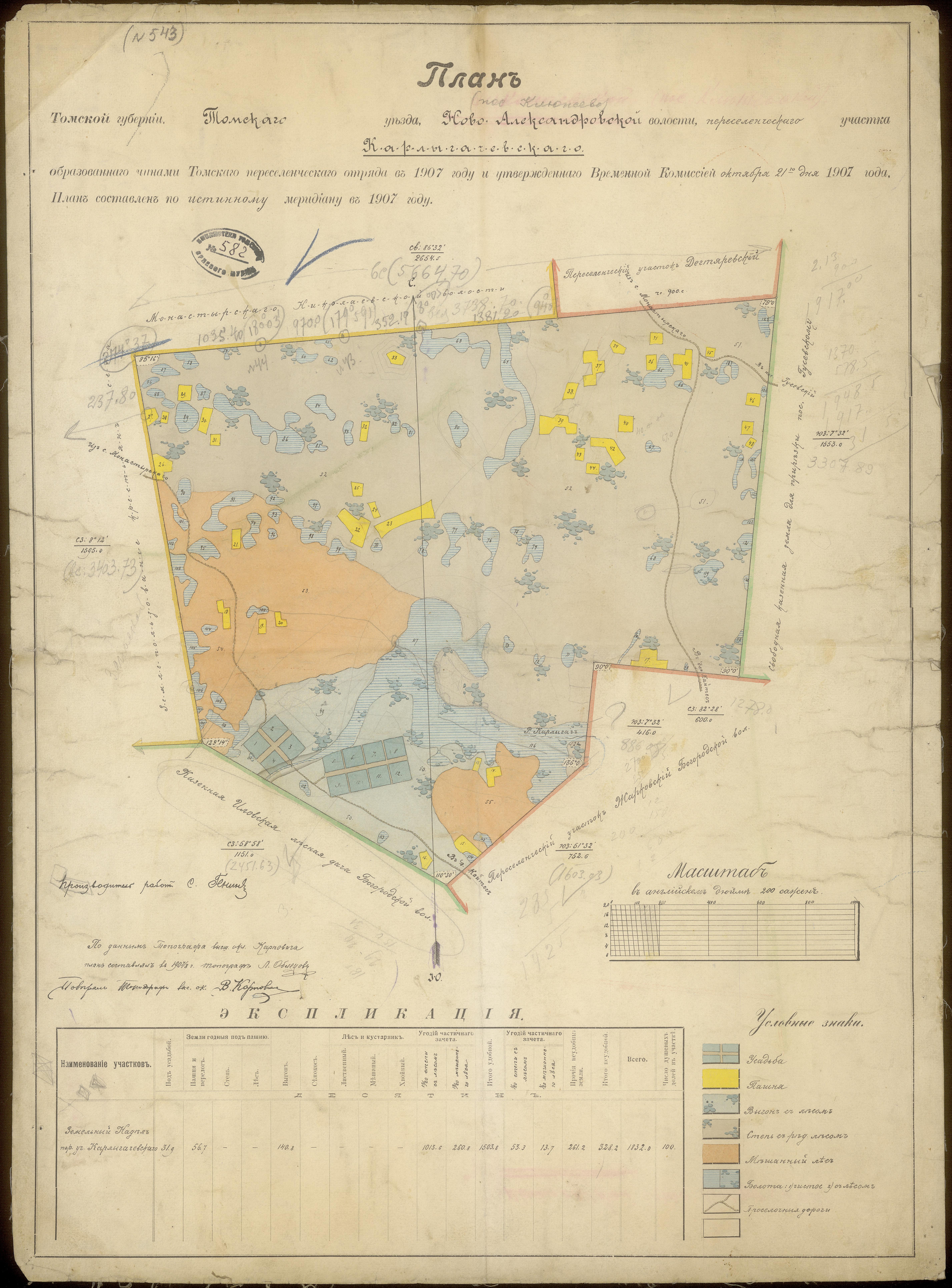 | План Томской губернии Томского уезда Ново-Александровской волости переселенческого участка Карлыгачевского, образованного чинами Томского переселенческого отряда в 1907 г. и утвержденного Временной Комиссией 21 окт. 1907 г. | 4 MB | JPEG Image | View Details | Download |